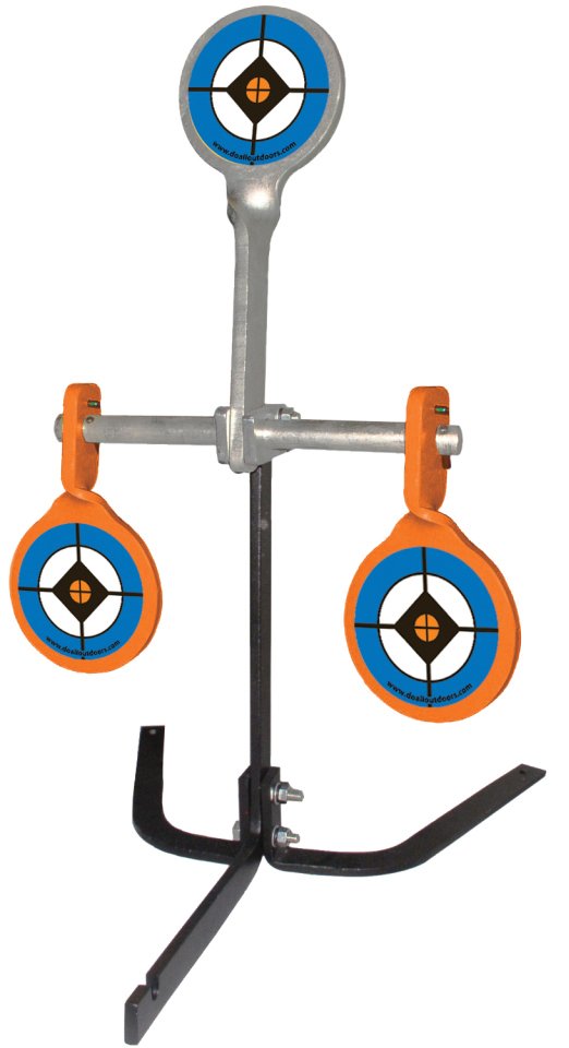 This Auto Reset Trap from Do-All Outdoors® is made specifically for 9MM-30.06 caliber handgun to high caliber. – Made specifically for 9mm-30.06 calibers – Hands-free auto-reset system – Huge high-visibility targets – No more walking downrange to reset your targets. Just set up these solid targets and shoot. Legs bolt directly to the upright post. Two hanging targets flip up and out of the way when hit. Simply shoot the top target and all the other targets flip back down. Twisted metal construction eliminates weak spots caused by welds.