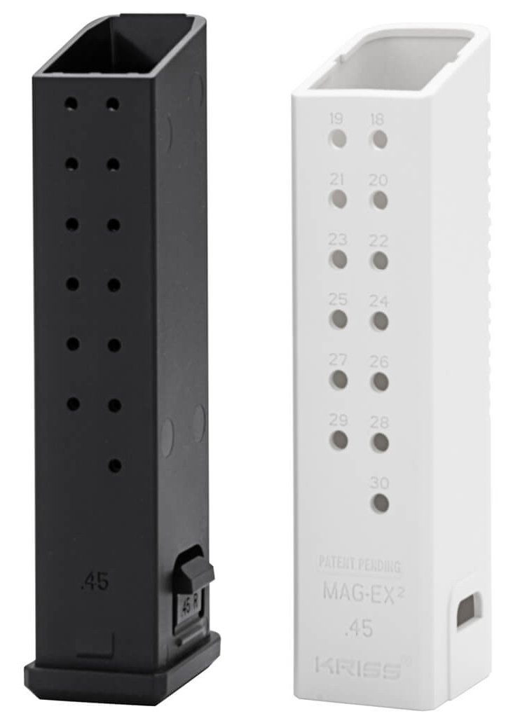 The KRISS MagEx2 Kit is the ultimate capacity extending base plate for your factory standard Glock magazines Gen 3 and later. The KRISS MagEx2 Kit is made up of the extended baseplate outer sleeve and extended spring constructed of durable and lightweight reinforced composites. Combining the MagEx2 Kit with the factory standard Glock magazine body and follower is a perfect match of reliable feeding toughness and aesthetics for the KRISS Vector. – The MagEx2 Kit is caliber-specific and available in 9mm 10mm and .45ACP and designed for standard capacity G17 G20 and G21 magazines for an overall capacity of 40 rounds of 9mm 33 rounds of 10mm and 30 rounds of .45ACP for your KRISS Vector Glock handgun and your Glock magazine-compatible pistol caliber carbine. – The color of the Alpine MagEx2 kit will differ from the finish of the KRISS Vector in Alpine. Unlike the firearm the Alpine MagEx2 kit is not Cerakote finished. – Features – Material: Polymer – Color: White – Requires: Standard Glock Magazine – please see chart for compatibility – Includes: Extended Base Plate Outer Sleeve Extended Spring