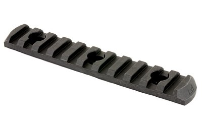 Designed for use with all M-LOK compatible Hand Guards and Forends, M-LOK Polymer Rail Sections provide a cost effective method of attaching various 1913 Picatinny spec rail-mounted accessories such as lights, vertical grips, etc. Injection molded from a proprietary reinforced composite for enhanced strength and durability while remaining lightweight, Rail Sections also feature beveled ends to reduce snagging and eliminate sharp corners and edges. All hardware necessary for attachment directly to M-LOK Slots on either aluminum or polymer hand guards and forends is included. 11 Slots, max overall length of 4.9 in. Made in U.S.A.