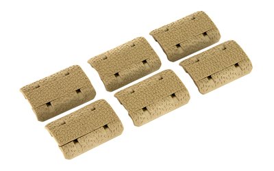 M-LOK Type 2 Rail Covers are low-profile, two-piece covers that install directly onto most M-LOK aluminum hand guards (non polymer). These M-LOK Covers are non-orientation specific which allow the user to mount them in any direction desired without affecting function, feature beveled contours to minimize potential snagging, utilizes Magpul’s TSP texture for additional grip, and protrudes only slightly more than 1/8″ from the mounting surface to maintain a low-profile. The center locking tab is pre-scored to allow the user to snap off sections and mix and match colors for a customized look. Includes six panels, each covering one M-LOK slot. Made in U.S.A.