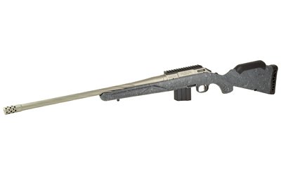 Ruger is proud to introduce the Ruger American Rifle Generation II, an update to the American-made rifle that has been the benchmark for accuracy, durability, and performance in bolt-action rifles for over a decade. Upgraded features include a durable, attractive Cerakote finish on the barreled action, a threaded bolt handle, stainless steel bolt body, and intuitive three-position tang safety that locks the bolt, which prevents inadvertent bolt opening yet allows the rifle to be loaded with the safety engaged. The rigid stock features a removable comb riser to improve sight alignment when using optics, as well as a length of pull (LOP) spacer, which can be removed or replaced to accommodate a variety of statures. Designed with customer feedback in mind, the Ruger American Rifle Generation II is sure to become the first choice for hunters and firearms enthusiasts. The standard generation II models feature a durable, Gun Metal Gray Cerakote barreled action and a dark gray stock that is textured with black and gray splatter for excellent grip and control in the field. The 20″, medium-contour, cold hammer-forged barrel features deep spiral fluting on most models, improving the balance of the rifle without sacrificing rigidity or accuracy. The threaded muzzle features a factory installed radial muzzle brake.