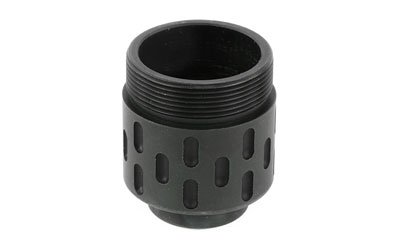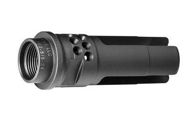 Caliber: 8.60 mm (.338 caliber) – Length: 2.xx inches – Delivers greatly reduced recoil impulse and muzzle rise and features neutral porting that loads bi-pod legs evenly – Multiple bearing surfaces for superior suppressor alignment – Precision machined from US mill-certified heat-treated stainless steel bar stock – High-precision single-point cut barrel threads for optimum thread interface – Inspected for all critical dimensions including concentricity and alignment – Pilot holes for tuning of muzzle brake and to pin-and-weld on short-barreled rifles – Black Ionbond DLC coating provides maximum protection against harsh environmental conditions and facilitates cleaning after extreme use – Serves as rock-solid mounting adapter for SureFire SOCOM Series sound suppressors – Labyrinth seals prevent carbon buildup on suppressor lock ring indexing system